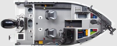 DURABLE DESIGN . MAXIMUM UTILITY Adventure starts with an Outfitter V This rugged Outfitter tiller model delivers dependable performance on any adventure. Its stable bow deck and spacious mid ship area make it a versatile workhorse on the water. ...