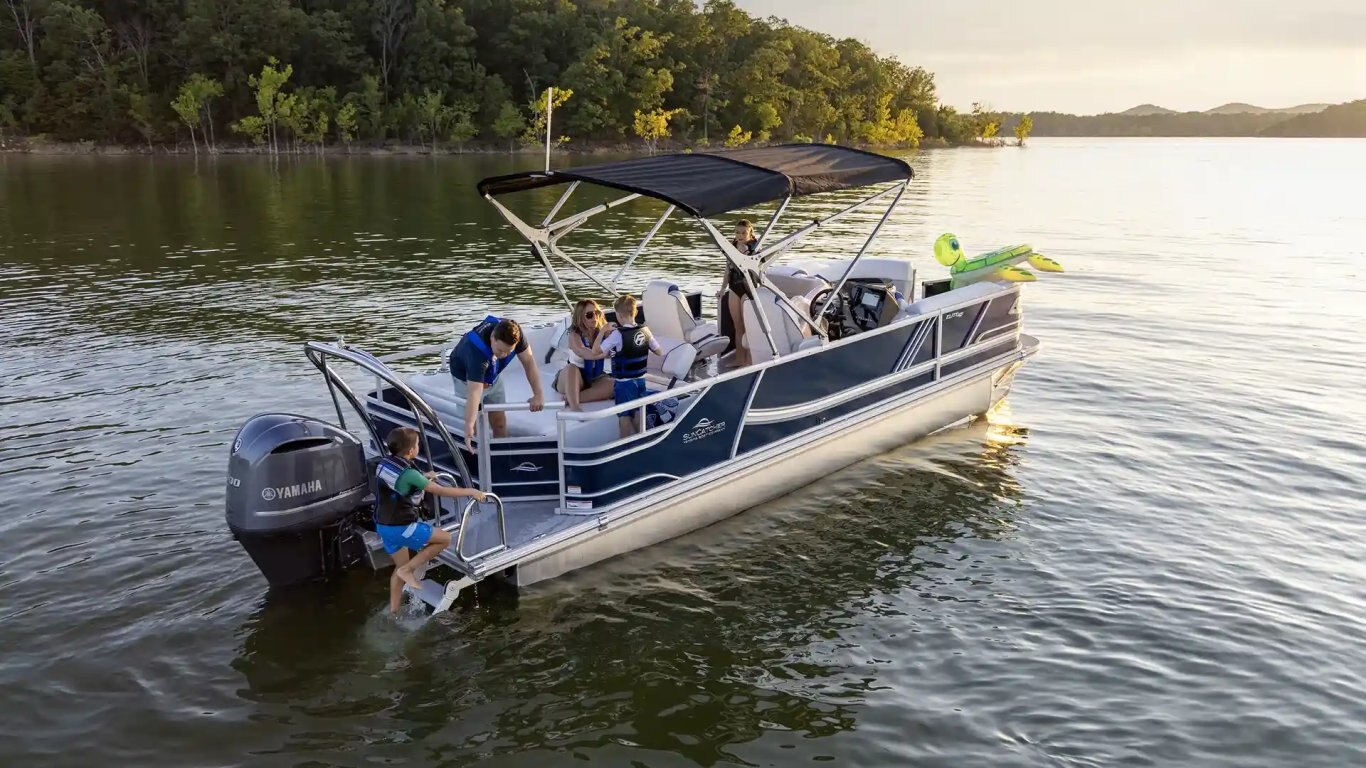 The 2″ main rail provides sturdy support and enhanced safety for passengers. Thoughtfully integrated SunCatcher branding adds a touch of style while reinforcing the boat’s quality and craftmanship.