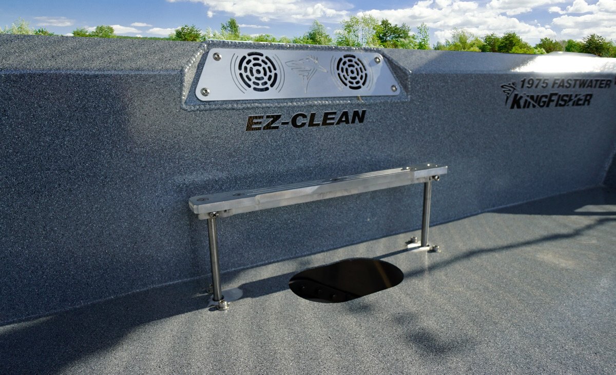 Peinture standard & Caractéristiques graphiques Pare-brise et proue peints en mouchetés/gunnels arrière & interior Choix de couleur de peinture extérieure sur la moitié du côté avec autocollant standard KingFisher Extrusion de rail de frottement d'arc peint Protection latérale non peinte en cuir de requin et combattant d'oxydation