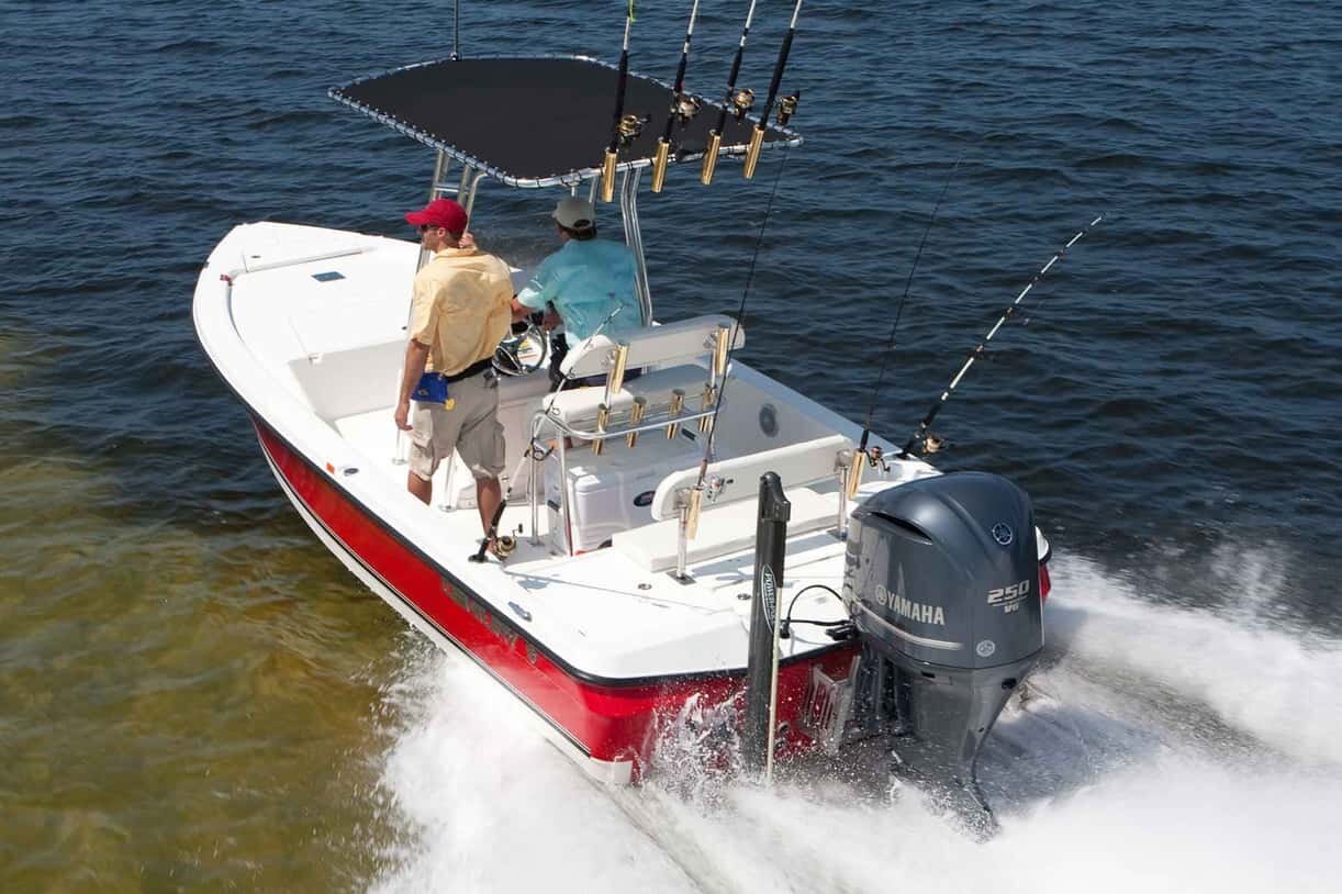 PROTECTION ET PUISSANCELes hors-bord hauturiers V-6 Yamaha possèdent un système de réduction de la pression dans l'échappement qui, en plus d'aider à refroidir le moyeu de l'hélice exposé aux gaz d'échappement chauds, aide au éveloppement de la puissance en « forçant » ces gaz à l'extérieur du moteur. |
